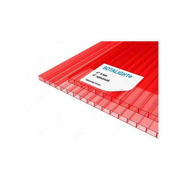 Сотовый поликарбонат 6 мм SOTALIGHT красный 2100х6000 мм