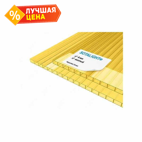 Сотовый поликарбонат 8 мм SOTALIGHT желтый 2100х12000 мм
