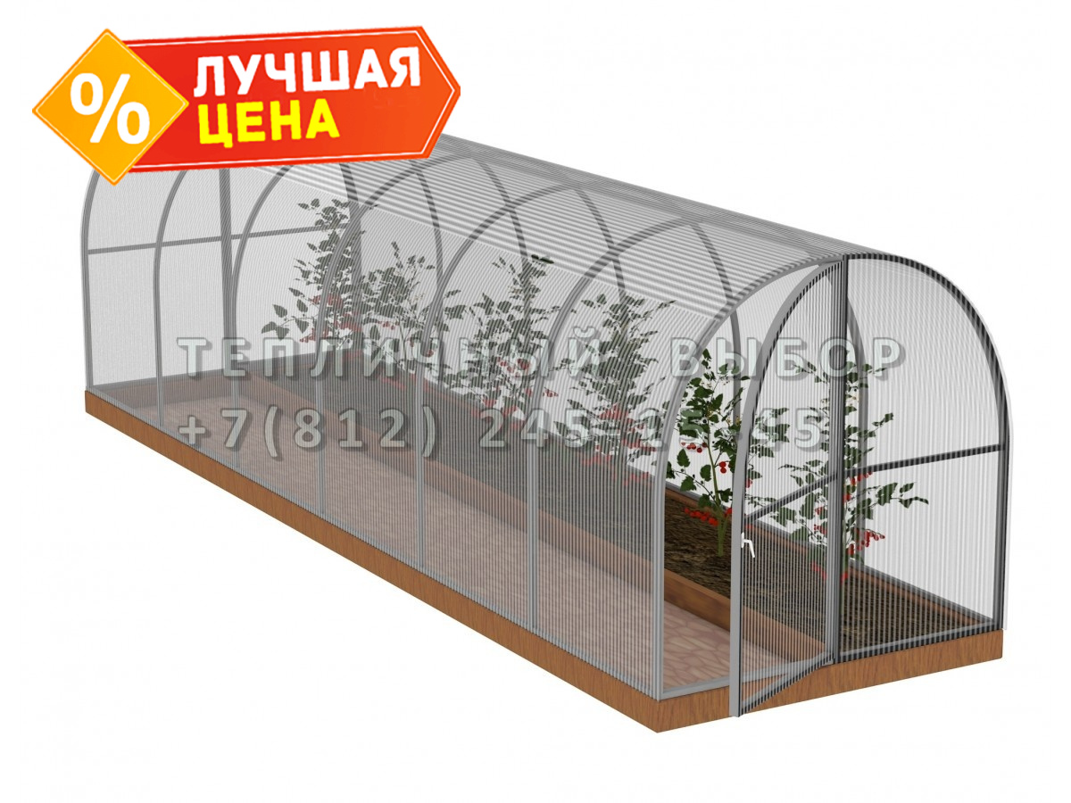 Теплица из поликарбоната Арочная 1,6х6 h=1.68 м профиль 20х20 мм