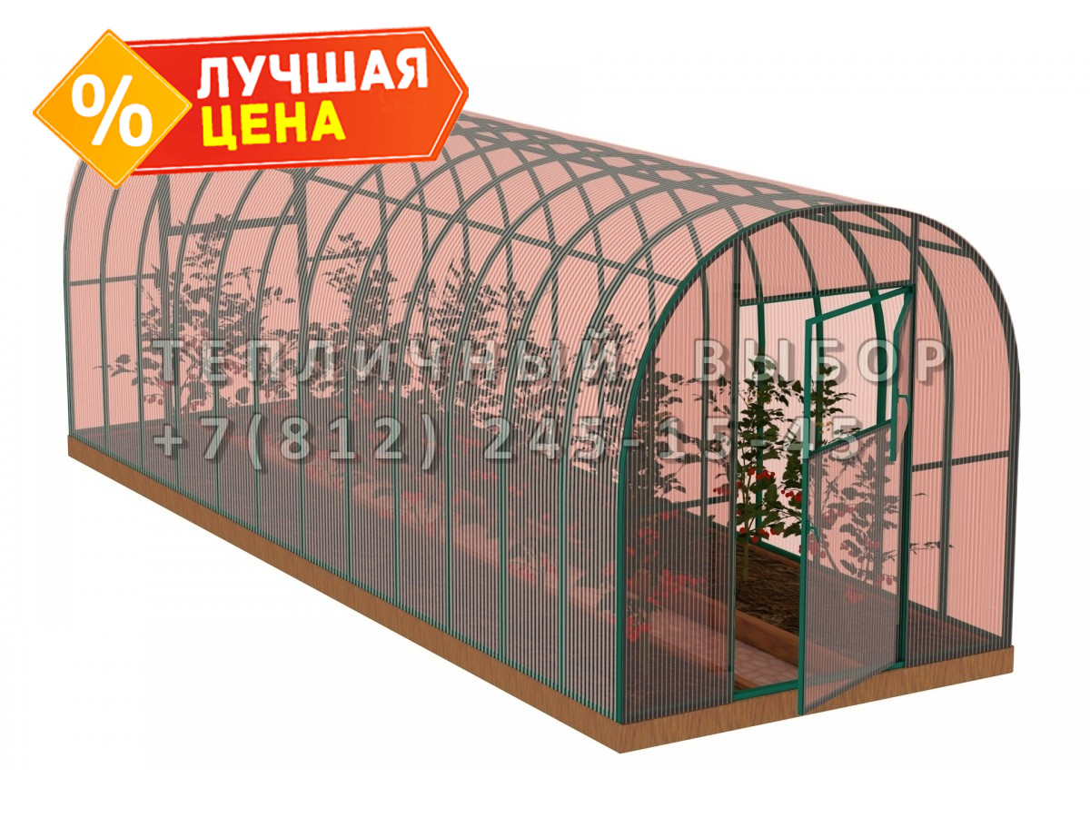 Теплица из поликарбоната-фито Усиленная Арочная 2,1х10 h=2 м профиль 25х25 мм Зеленый