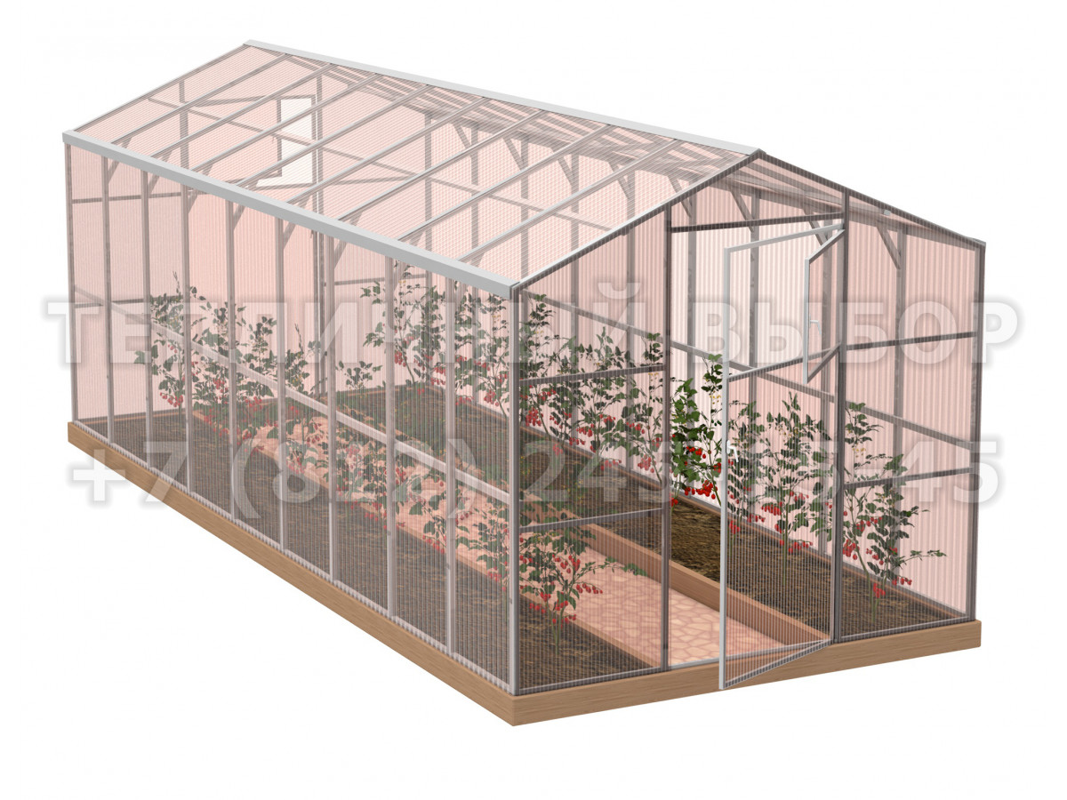 Теплица из поликарбоната-фито Усиленная Домиком 2,3х10 h=2.1 м профиль 25х25 мм