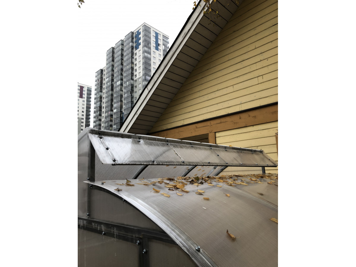 • поликарбонат толщиной 4 мм (в транспортном состоянии свёрнутые в рулон листы имеют диаметр до 80 см и длину 2.1 м);