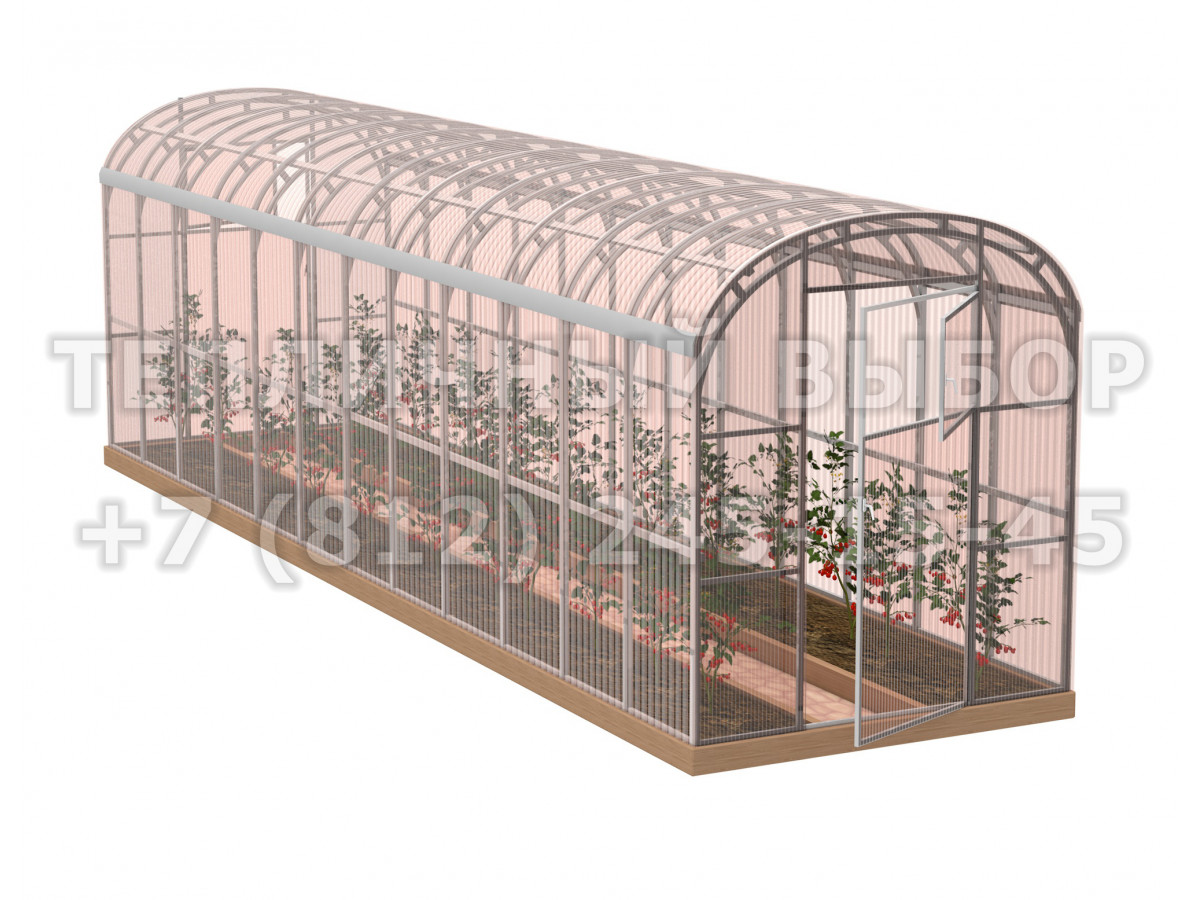 Теплица из поликарбоната-фито Усиленная Прямостенная 2,1х10 h=2.1 м профиль 20х40 мм