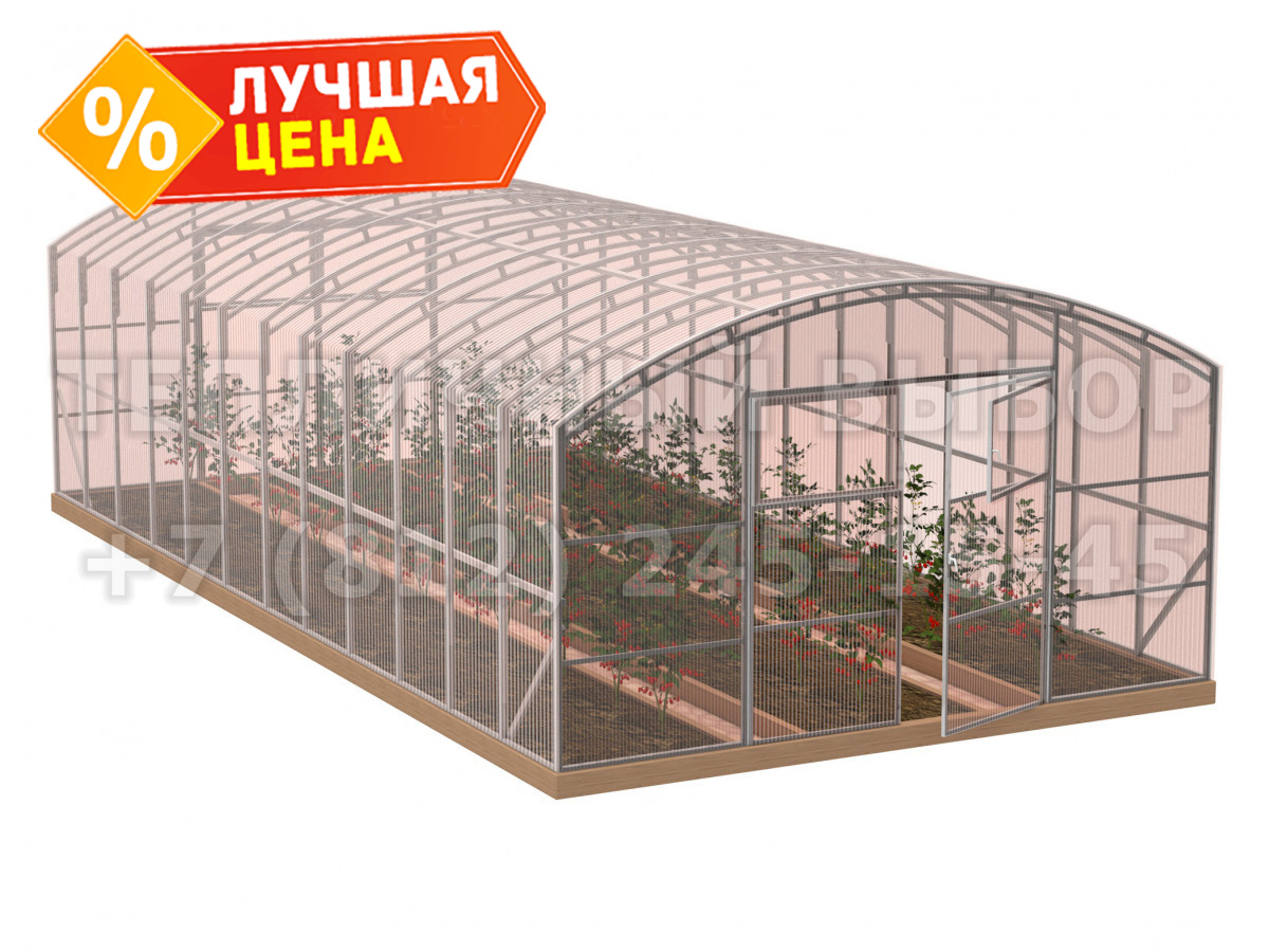 Теплица из поликарбоната-фито Усиленная Прямостенная 5х12 h=2.4 м профиль 20х40 мм