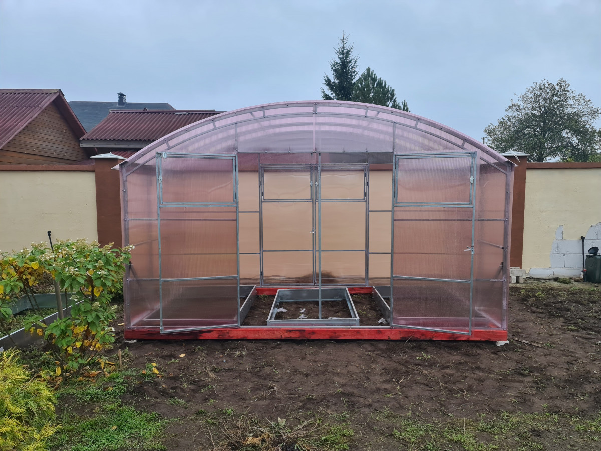 В разобранном виде теплица состоит из отдельных сварных рам в виде дуги. Транспортные габариты 5260х2500 мм. Для перевозки необходим микроавтобус или автоприцеп.