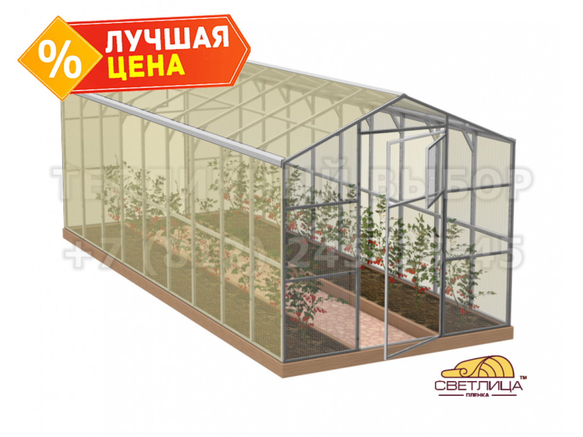 Теплица из поликарбоната и пленки светлица Усиленная Домиком 2,3х8 h=2.1 м профиль 25х25 мм