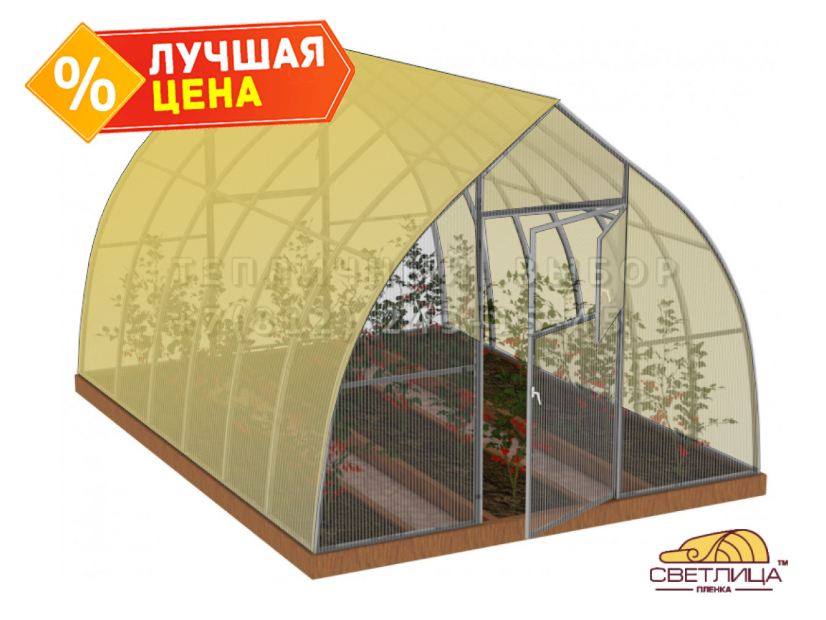 • укрывной материал на крышу теплицы - легендарная пленка «Светлица» толщиной 150 мкм, пленка имеет уникальный состав, который делает ее прочной, эластичной и долговечной (не менее 7 лет без снятия на зиму)