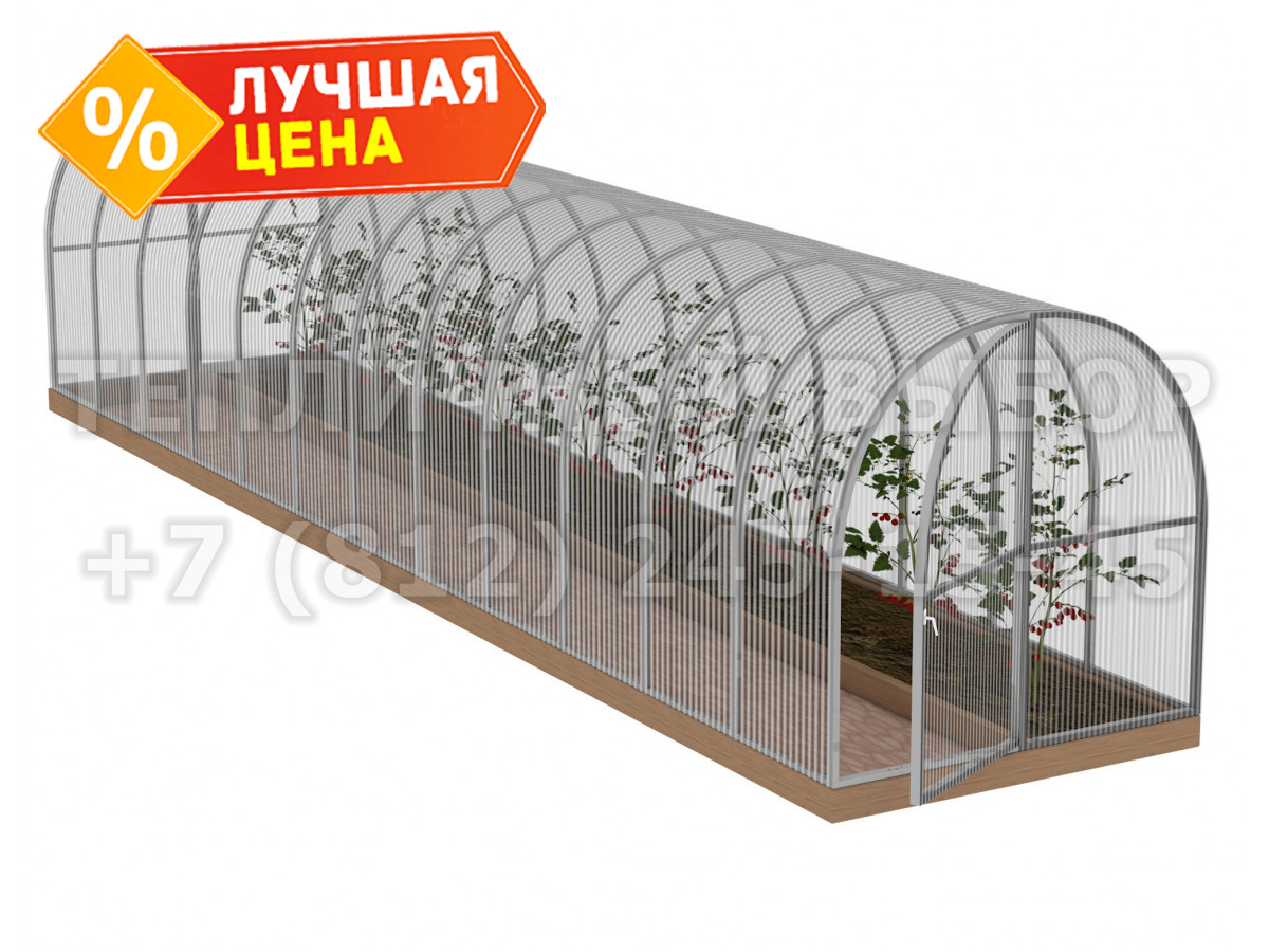 Теплица из поликарбоната Усиленная Арочная 1,6х8 h=1.68 м профиль 20х20 мм
