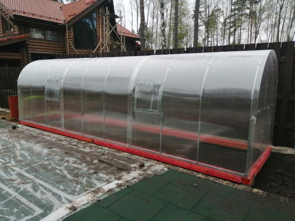 • узкая арочная конструкция с крутым скатом препятствует скоплению снега в зимний период
