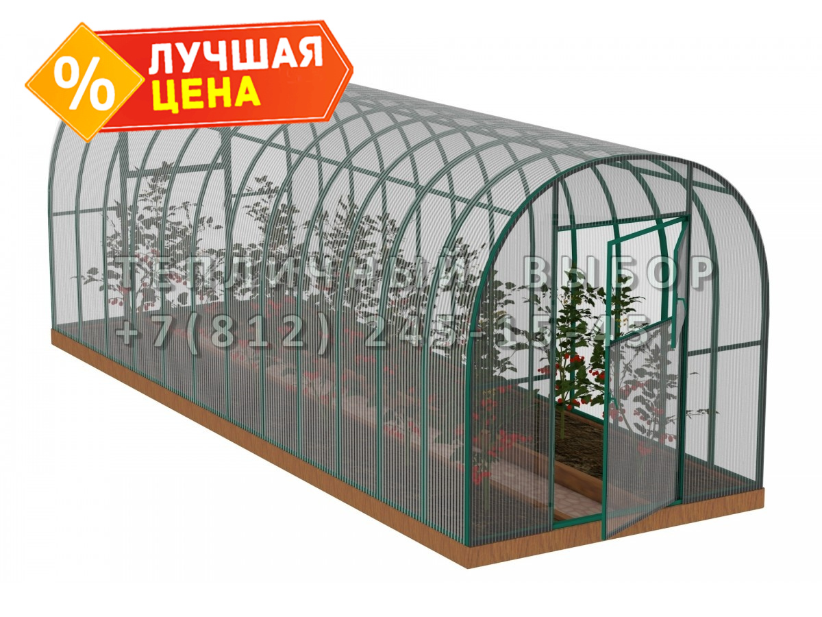 Теплица из поликарбоната Усиленная Арочная 2,1х10 h=2 м профиль 25х25 мм Зеленый