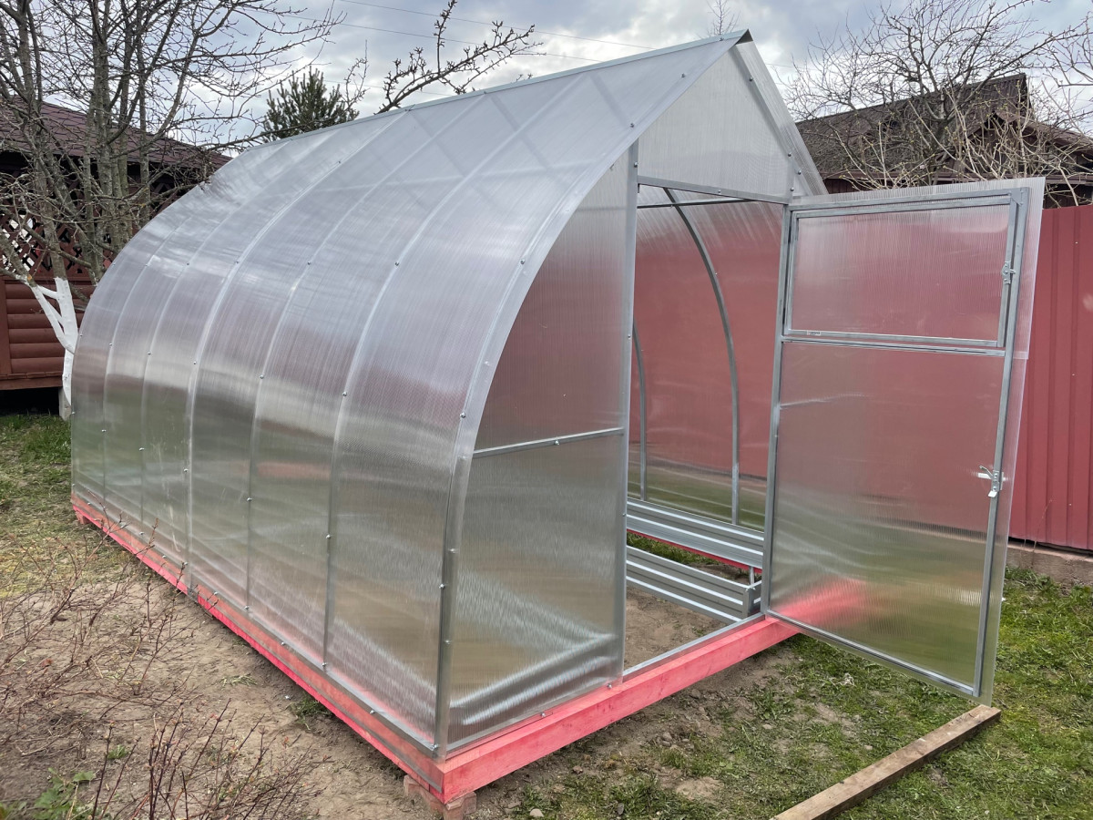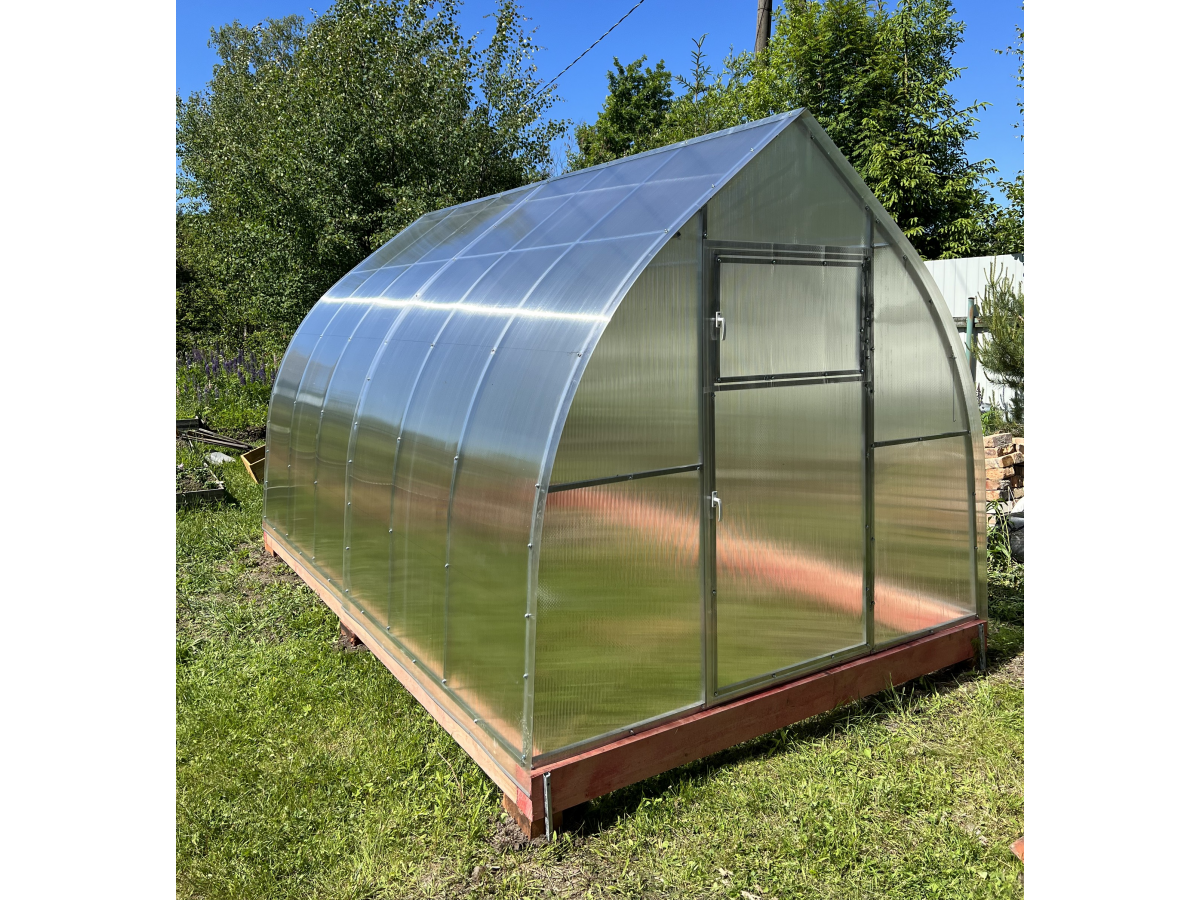 Теплица из поликарбоната Усиленная Капелька 2,5х8 h=2.3 м профиль 25х25 мм