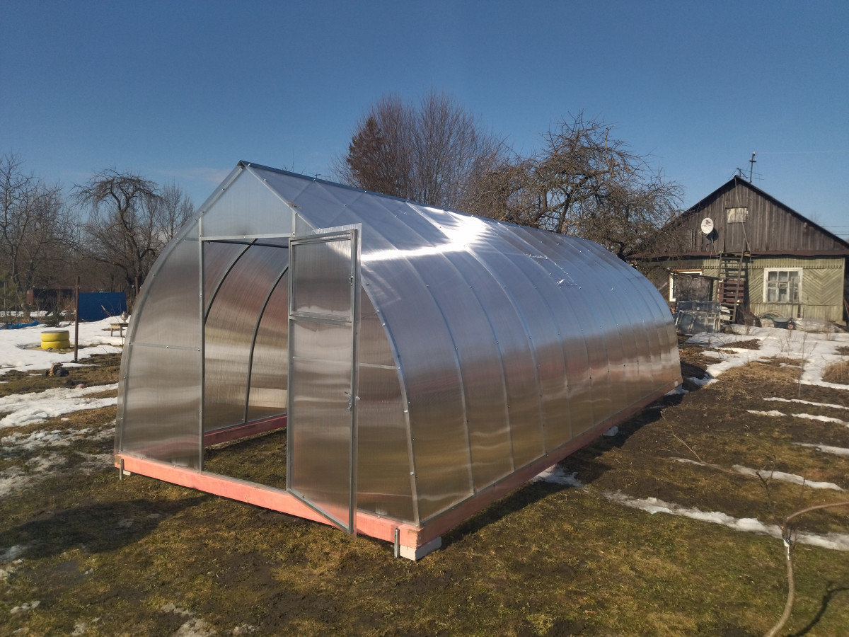 В разобранном виде теплица состоит из отдельных сварных рам в виде дуги.