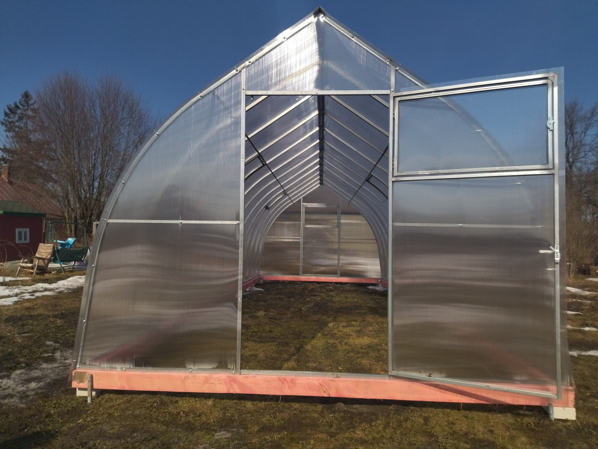 • практичная конструкция: 2 двери и 2 форточки обеспечивают легкий доступ в теплицу и ее проветривание. Размер дверей 171х89 cм, размер форточек в дверях 48х83 см