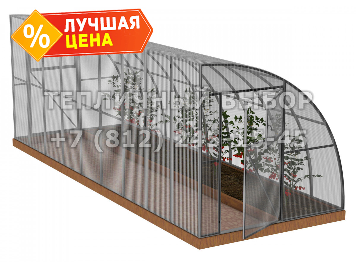 • практичный каркас с дверьми и форточками в каждом торце обеспечивает легкий доступ в теплицу и её проветривание;