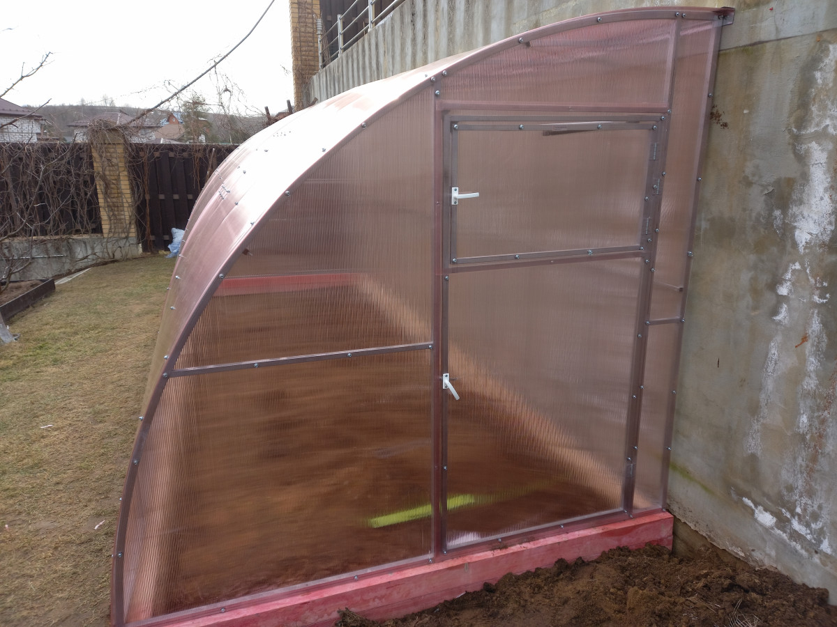 Теплица из поликарбоната Усиленная Пристенная 2,3х6 h=2.1 м профиль 25х25 мм