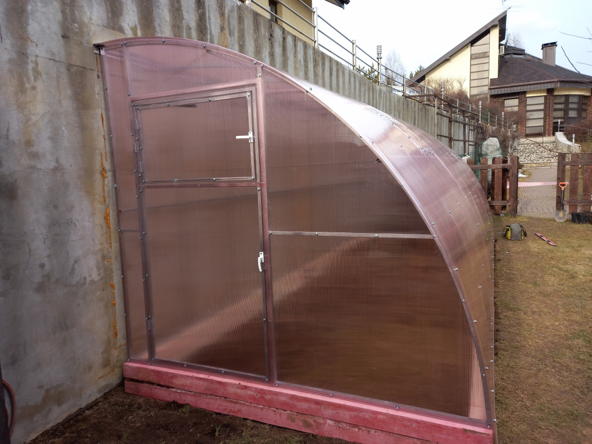 Теплица из поликарбоната Усиленная Пристенная 2,3х8 h=2.1 м профиль 25х25 мм