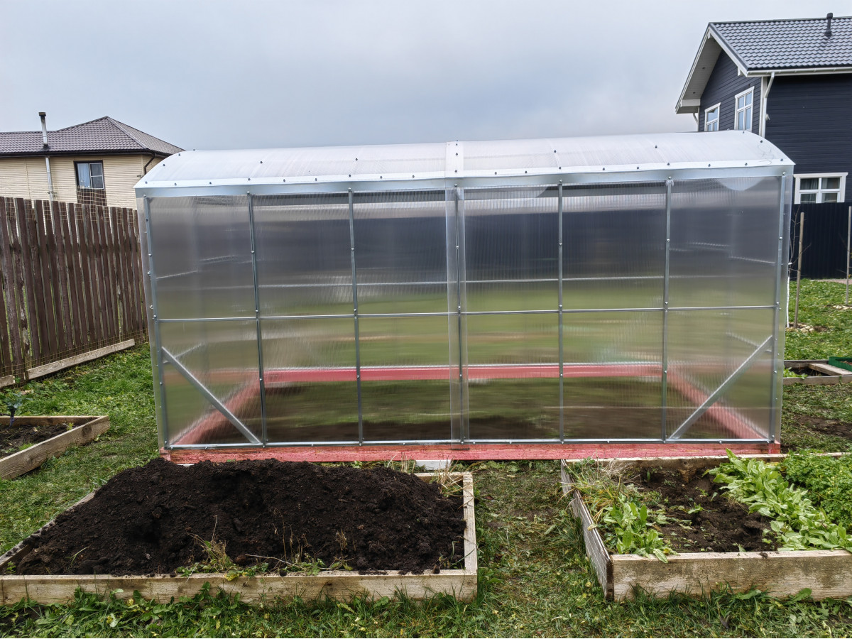 Теплица из поликарбоната Усиленная Прямостенная 2,5х8 h=2.1 м профиль 20х40 мм