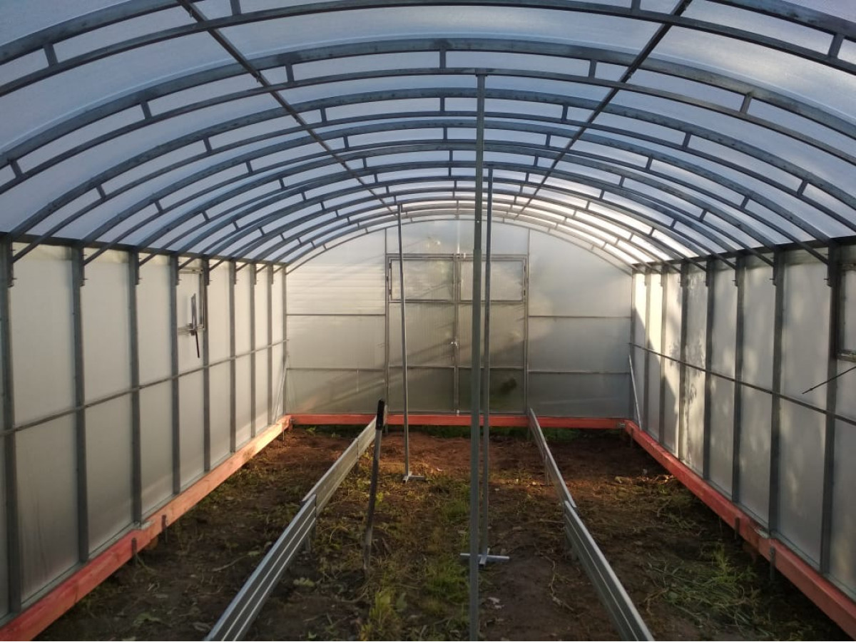 • широкая, ширина теплицы 5 метров позволяет организовать 4 широкие полноценные грядки с комфортными проходами между ними;