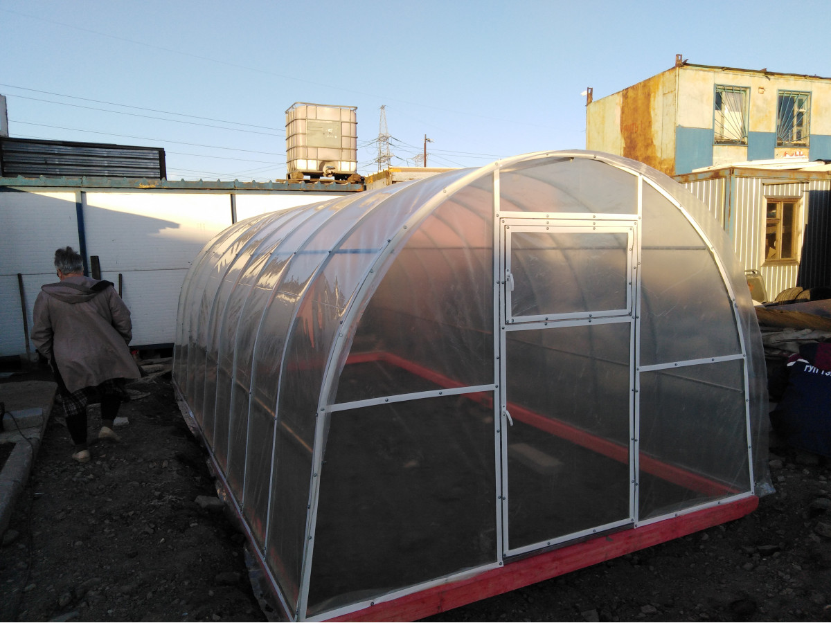 В разобранном виде теплица состоит из отдельных сварных рам в виде дуги.